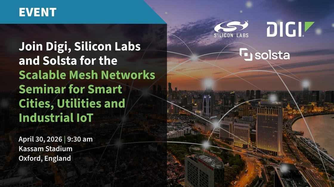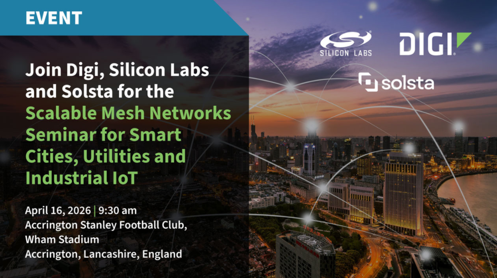 Digi International, Silicon Labs și Solsta vă invită la conferința “Scalable Mesh Networks Seminar for Smart Cities, Utilities and Industrial IoT” organizată onsite în Marea Britanie pe 16 și 30 aprilie 2026 și care se adresează liderilor în inginerie și tehnologie pentru a explora abordări practice pentru construirea unei comunicații wireless sigure și fiabile între sistemele conectate, atât celor din mediul academic, cât și celor din mediul privat.