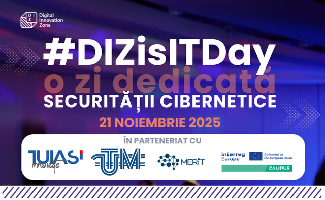 Digital Innovation Zone și EDIH DIZ, împreună cu Universitatea Tehnică „Gheorghe Asachi” din Iași(TUIASI) și Universitatea Tehnică a Moldovei(UTM), vă invită la #DIZisITDay: o zi dedicată securității cibernetice, un eveniment care aduce la aceeași masă experți internaționali, mediul academic și companii.