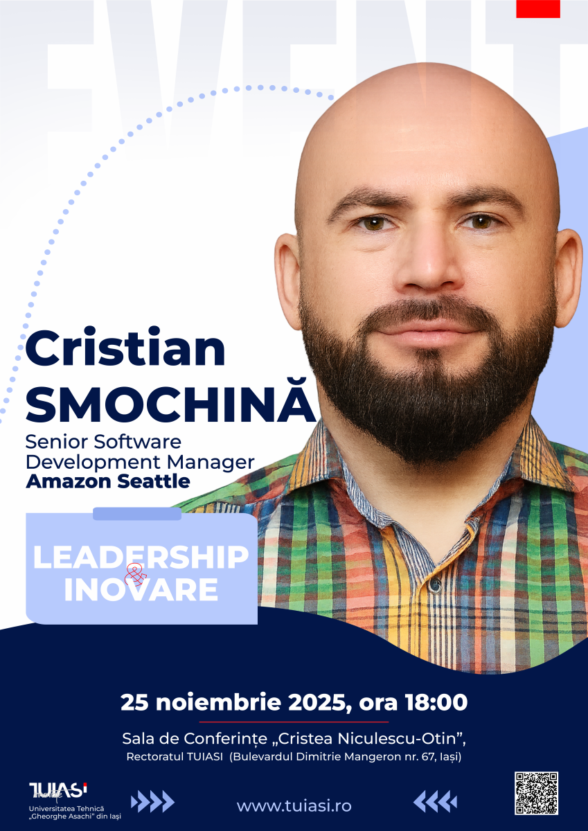 Vă invităm să participați la o nouă întâlnire din seria Leadership & Inovare, avându-l ca invitat pe dl. Cristian Smochină, absolvent al Facultății de Automatică și Calculatoare (promoția 2008).