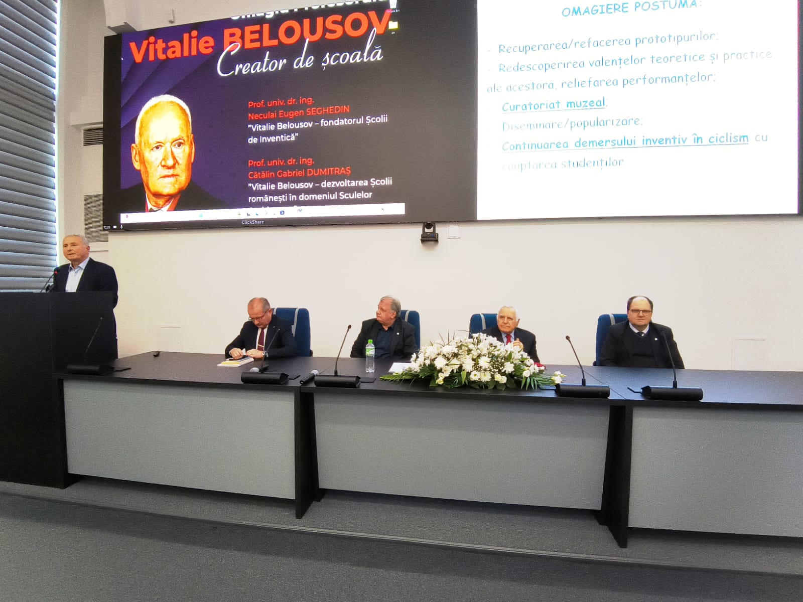 Evenimentul a marcat împlinirea a 10 ani de la dispariția profesorului și a fost organizat de Departamentul Sisteme de Producție Digitale. Evocarea personalității sale a fost structurată pe trei paliere fundamentale care i-au definit cariera: Vitalie Belousov – Fondatorul Școlii de Inventică, prezentat de prof. univ. dr. ing. Neculai Eugen Seghedin; Vitalie Belousov – Creatorul Școlii românești de Scule Așchietoare, prezentat de prof. univ. dr. ing. Cătălin Gabriel Dumitraș; Vitalie Belousov – Pasiunea pentru performanța bicicletelor, o latură inedită prezentată de prof. univ. dr. ing. Mihăiță Horodincă. Unul dintre punctele culminante ale întâlnirii a fost proiecția filmului documentar „Fabrica de Inventatori”, realizat în anul 1978 de reputatul cineast ieșean Iancu Moscu, la Studiourile Sahia. Filmul a oferit o surpriză emoționantă audienței, surprinzând imagini cu profesorul Belousov și echipa sa în plină efervescență creativă. Mulți dintre cei prezenți în sală, astăzi profesori emeriți, s-au putut revedea în peliculă în ipostaza de tineri asistenți sau studenți.