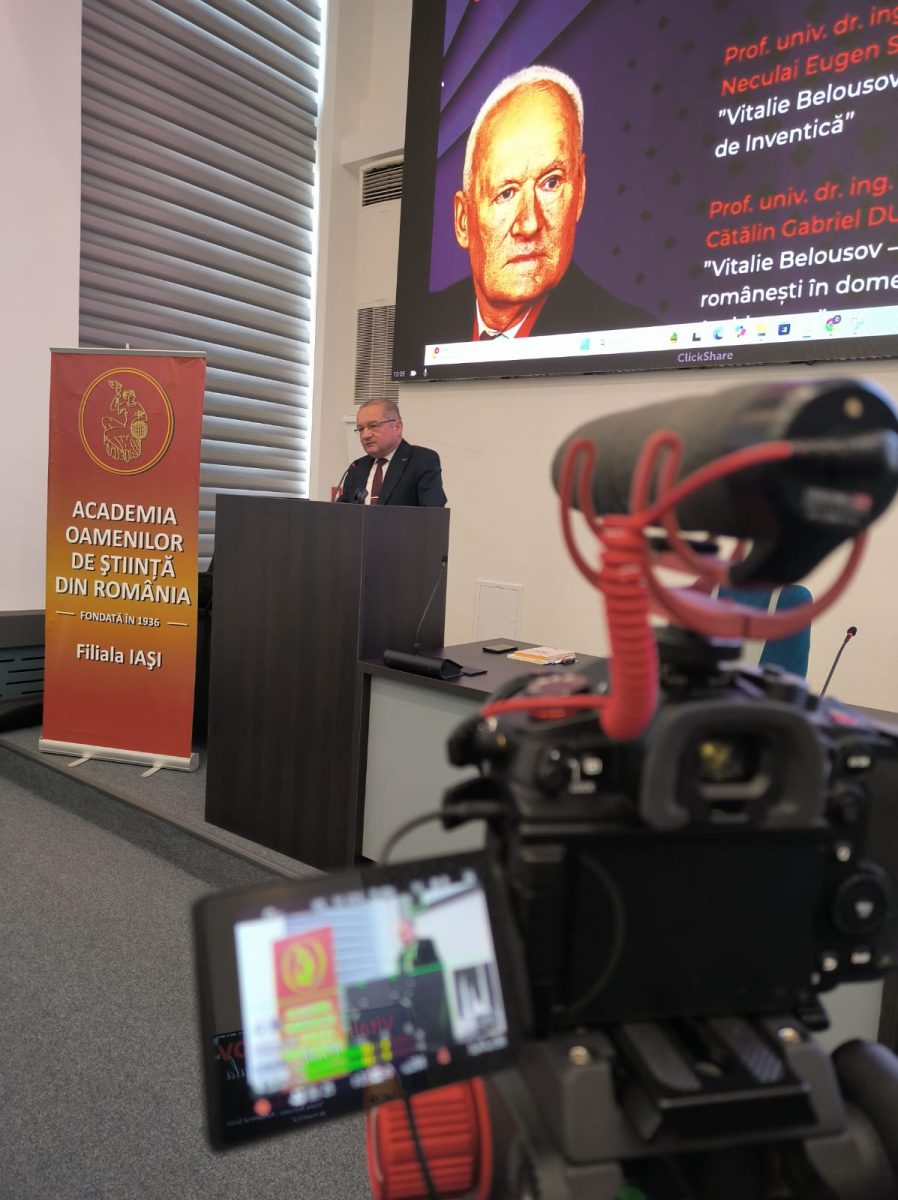 Universitatea Tehnică „Gheorghe Asachi” din Iași (TUIASI) a găzduit un eveniment de o înaltă încărcătură simbolică și academică, dedicat memoriei Prof.univdr.ing. Vitalie Belousov, personalitate marcantă a ingineriei românești și ctitor al Școlii de Inventică. Manifestarea, desfășurată sub titlul „Omagiu Profesorului Vitalie Belousov – Creator de școală | În loc de lacrimă, cuvântul…”, a reunit în Sala Senatului „Cristea Niculescu-Otin” peste 60 de participanți: de la foști colaboratori și profesori retrași din activitate, până la cadre didactice actuale și studenți din cadrul facultăților de Construcții de Mașini și Management Industrial, Mecanică, și Știința și Ingineria Materialelor.