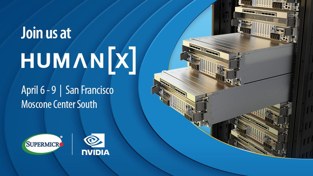 Supermicro și NVIDIA vă invită la conferința cu expoziție HUMAN[X], care este cel mai important eveniment de inteligență artificială de acest gen, conceput pentru a conecta cei mai influenți directori, inovatori și factori de decizie din industria inteligenței artificiale.