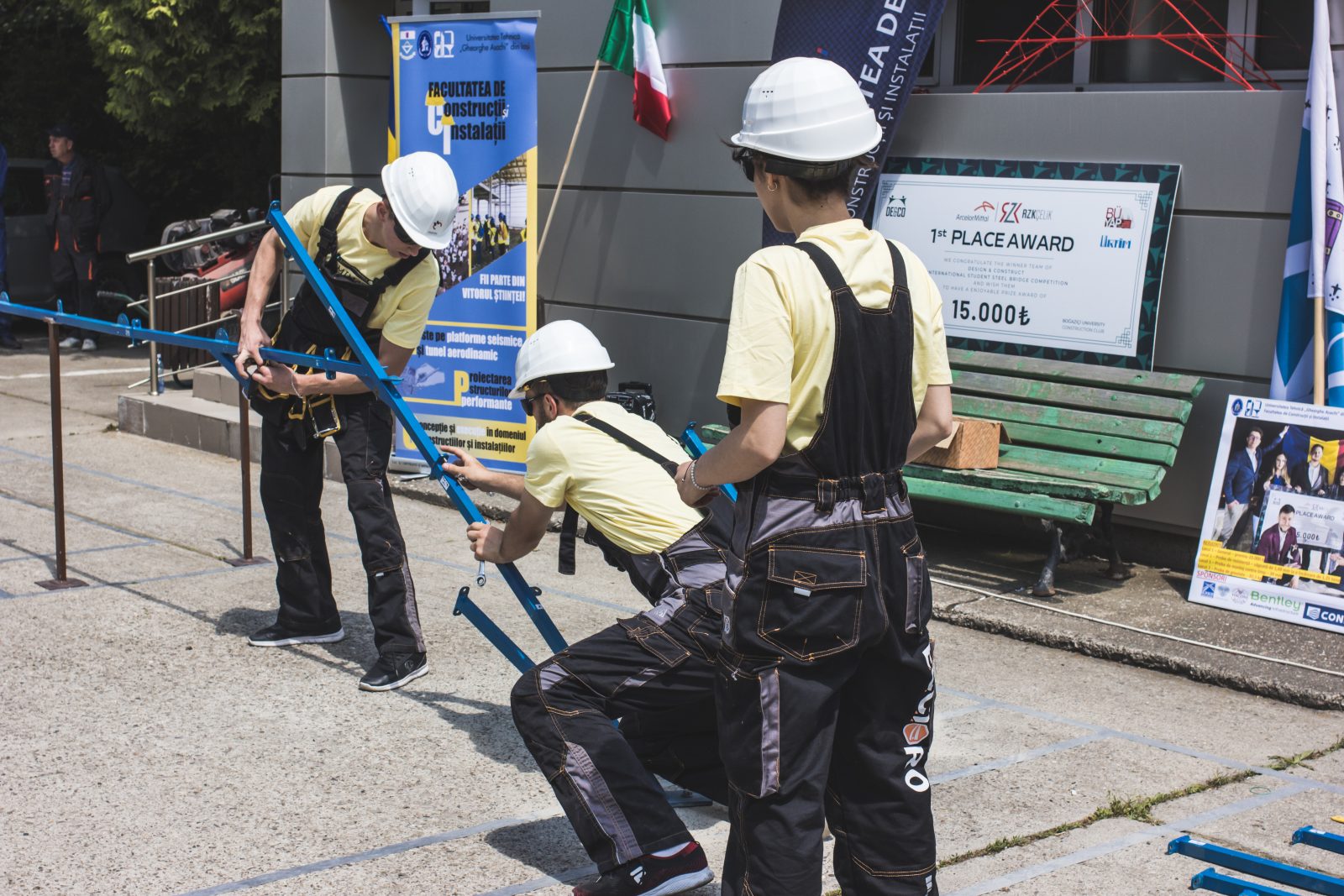 Studentul Adrian Ilucă a vorbit despre rigurozitatea competiției. „Totul e luat din realitate, e ca o zonă de șantier aici, ăsta e un pod care se pune peste apă. De aceea noi nu avem voie să scăpăm șuruburi. Noi eram macaralele, dacă noi scăpam o chestie în apă, nu aveam cum să o luăm înapoi.”