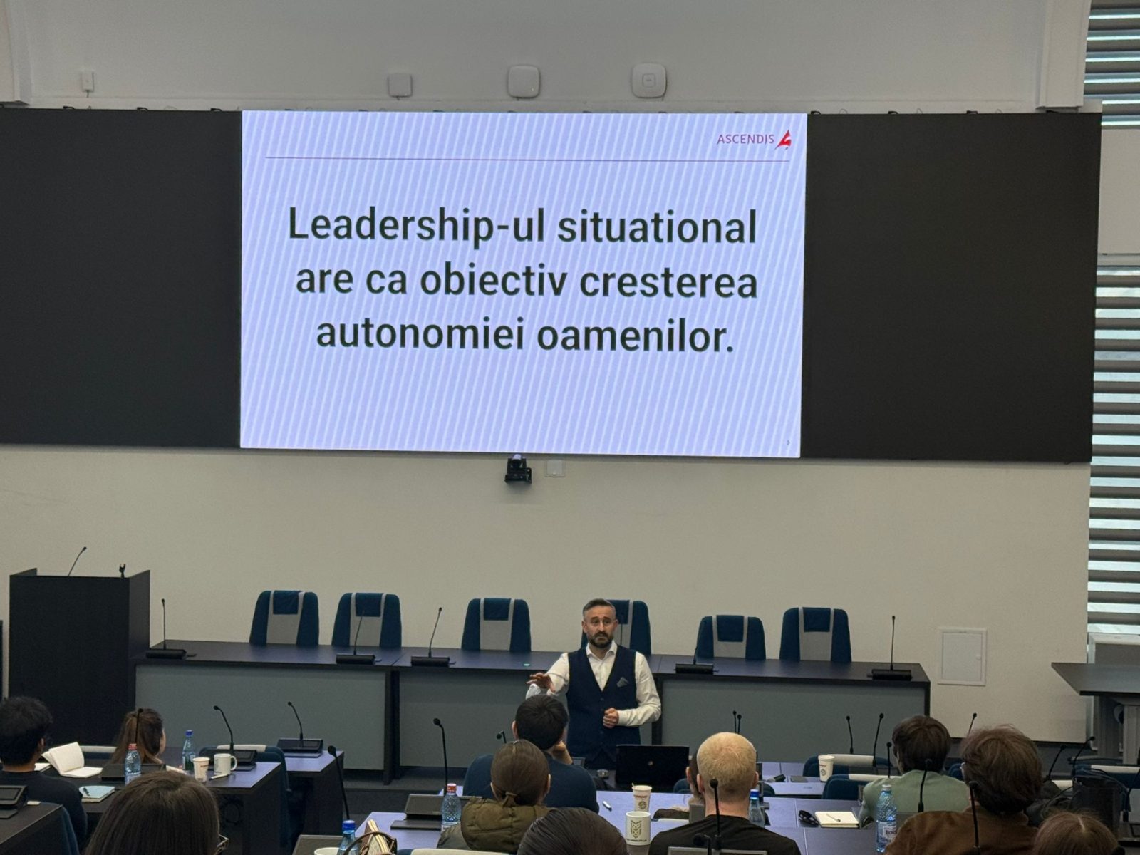 Seria a continuat pe 17 martie 2026 cu workshop-ul dedicat leadershipului situațional, susținut de Ovidiu Ghiuzan, trainer Ascendis, care a evidențiat importanța adaptării stilului de leadership în funcție de context și de echipă.